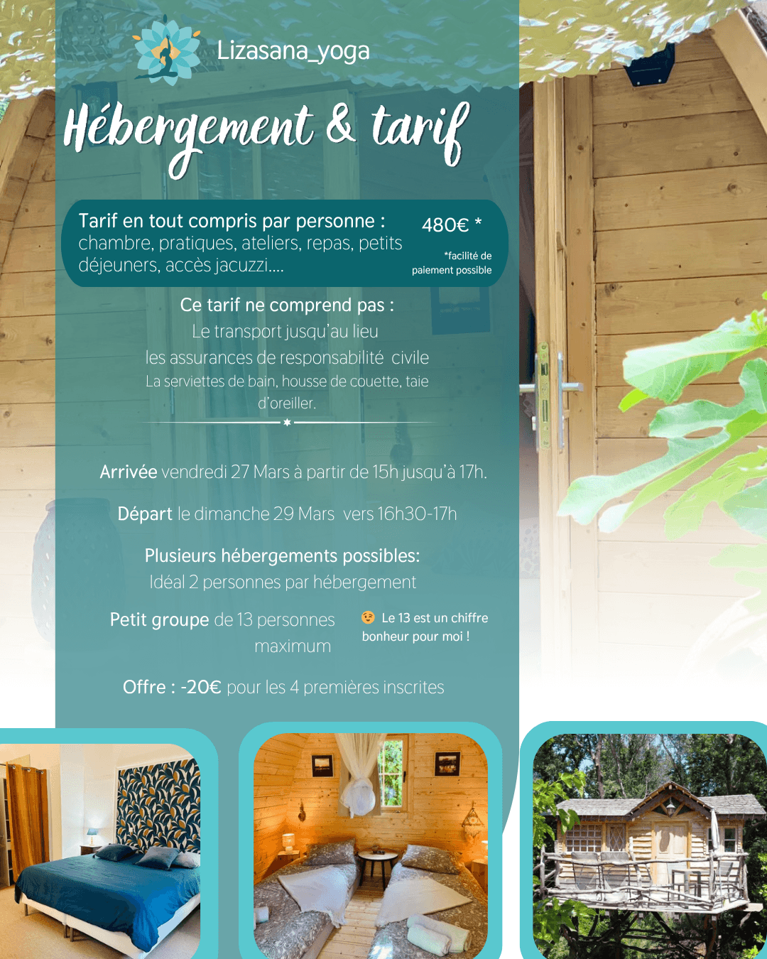 Tous les détails concernant les conditions générales de vente, paiements, annulation, facilité de paiement se trouvent en bas du formulaire ci dessous.